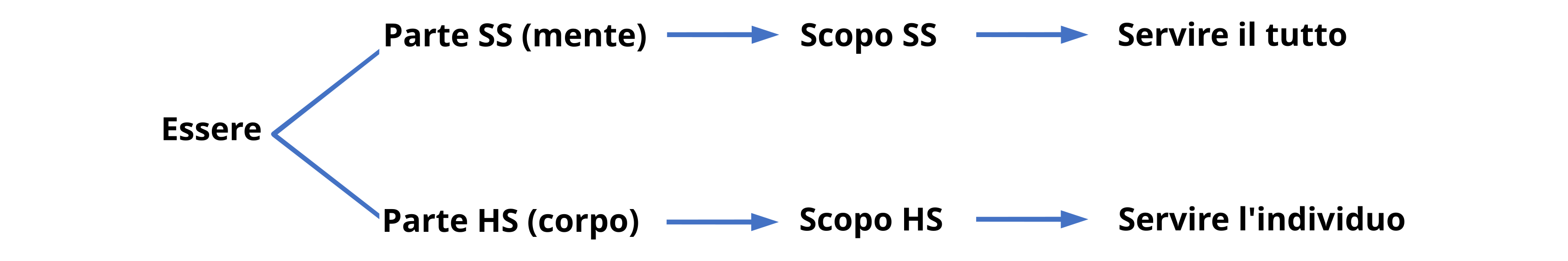 Il SS dell’uomo è la sua mente, e lo HS il suo corpo. La mente è il carattere interiore invisibile, mentre il corpo la forma esteriore visibile. Attraverso la chiromanzia, la fisionomia, l’analisi della struttura ossea e metodi analoghi, si può risalire alle caratteristiche mentali dell’uomo.